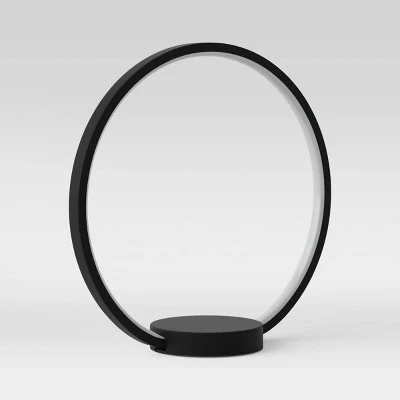 Add an element of chic modern style to your home with the 12.5-Inch Table Lamp (Includes LED Light Bulb) from Project 62™. This freestanding novelty table lamp features a black metal, open round ring fixed with an integrated LED bulb along the inner rim, standing atop a disc metal base for a minimalist look. Helping to add a touch of eye-catching beauty with its unique design, this decorative lamp will provide a soft glow and is great to be used an accent piece in your living room, entryway and beyond.