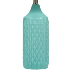 This transitional ceramic table lamp featuring a reactive glazed finish topped with a white linen shade makes the perfect accent piece with a pop of color that blends with a variety of décor styles. The lamp is fitted with an easy and convenient push on/off switch. Try pairing them next to your bedside or favorite sofa to bring together a cohesive look.