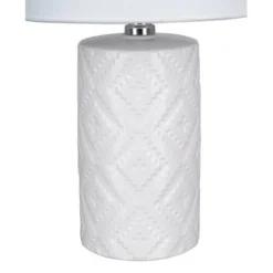 This transitional ceramic table lamp featuring a reactive glazed finish topped with a white linen shade makes the perfect accent piece with a pop of color that blends with a variety of décor styles. The lamp is fitted with an easy and convenient push on/off switch. Try pairing them next to your bedside or favorite sofa to bring together a cohesive look.