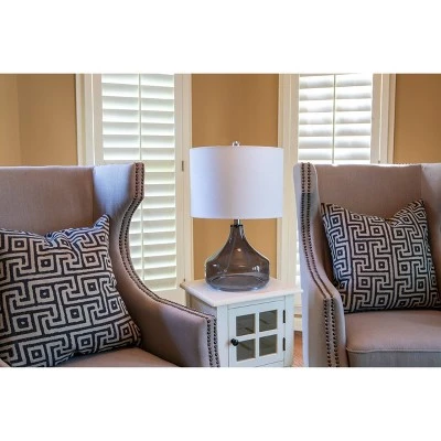 Bring a room to life by adding light and style with our mid-century inspired Translucent Glass Table Lamp. Simple lines, combined with the transparent luster glass base, create an airy look. Completing the design is a natural linen shade which lends a casual feel. The Luster finish adds a subtle touch of color and elegance to your entryway table, side table or night stand. Requires one (1) 100 watt bulb, not included. Measures 14x14x22″