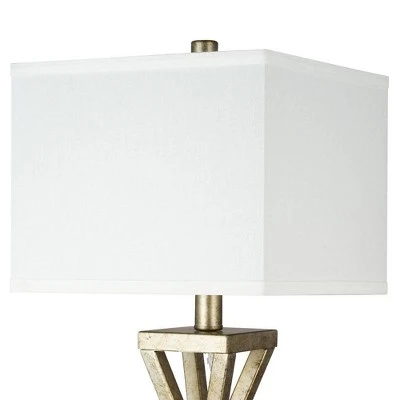 This 22.5″ transitional table lamp features a geometric base design with a hand painted silver leaf finish and white linen rectangular shade is the perfect finishing touch to your bedroom as a bedside lamp, living room, family room or den.Smart home compatible, this item can also be set up using a smart outlet or switch (sold separately) to easily connect to Alexa, Google Home or any other smart home device.