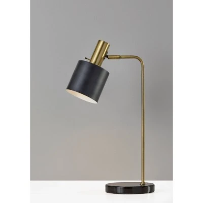 An essential addition to mid-century modern decor, the Emmett Desk Lamp is both functional and stylish. A small footprint allows this piece to fit neatly on the night stand or desk without taking up too much space. An adjustable shade allows for light to be directed where it is needed. A painted black metal and antique brass finish is accented by an elegant black marble base.