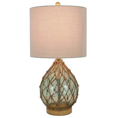 Bring a hint of coastal charm to your home with this handsome jute rope wrapped table lamp. The glass base is topped with a natural rope netting, adding texture to your side table or night stand. A natural linen shade adds a refreshingly modern touch. The 3-way light feature allows you to give the perfect amount of lighting for every occasion. Constructed of glass, poly and jute rope. Requires one (1) 100 watt bulb, not included. Measures 12 x 12 x 23″