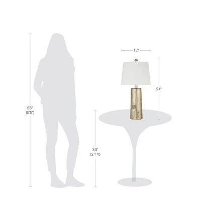 This rustic farmhouse table lamp features a soft gold luster finish that looks like natural wood. The faux bois wood finish lends the design a stunningly organic appeal that projects lasting style. Topped with a matching off-white linen shade, this table lamp promises to elevate your home decor in any room. Great for apartment living or DIY home remodeling projects.