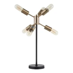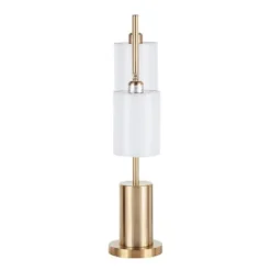 Chic, bold, and classy, that’s the Hilton Table Lamp from LumiSource. This art decco inspired lamp is sure to brighten up any room. Showcasing a sleek metal shade, two hanging pull chains, and a luxurious gold finish all on top of a sturdy black base. This lamp will add a look of luxury to any space.