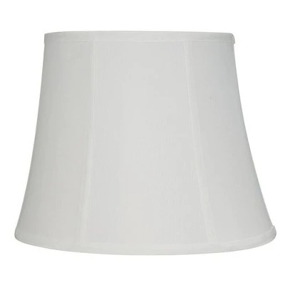 - White faux silk drum bell shade: 10″L x 14″W x 11″H.