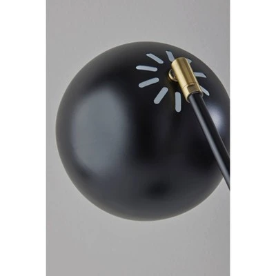 Inspired by mid-century modern design, the Ashbury lamp is the perfect addition to any desk or accent table. Expertly blending a sleek, stripped down contemporary body with mid-century modern coloration, the lamp’s metal construction features black finish with antique brass accents, while the 6.5″ globe-shaped shade directs light from a 40W bulb (not included) through a 4.6″ opening. Just as versatile as it is aesthetic, the lamp features two articulation points, one along the stem allowing for large adjustments to the lamp height and another located at the base of the shade to provide pinpoint directional lighting. For convenient access to power right from your desktop, the 7″ diameter round base features an AC outlet. Whether the lamp is turned on or off, the AC outlet will keep working normally. Operated by a rocker switch located on the base, the lamp also features a 5′ black cord. The Ashbury desk lamp is also available with an all-over antique brass finish.