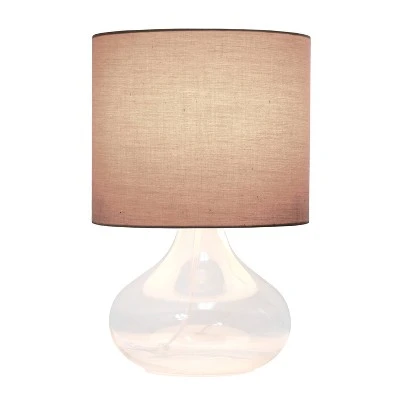Illuminate your living space with this simple yet stylish glass table lamp. The clear glass raindrop shaped base and gray fabric drum shade is the perfect blend of charm to give your home a contemporary and modern upgrade. Perfect for living rooms, bedrooms, kids and teens, college dorms, apartments, nurseries, or offices.