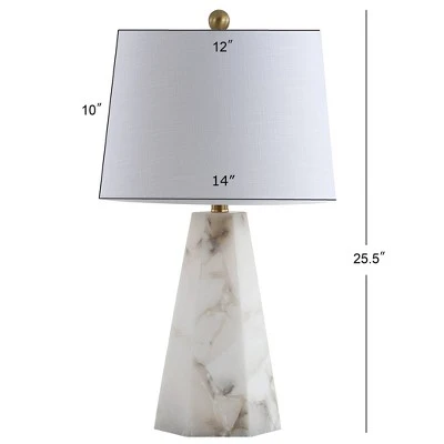 - Natural alabaster, faceted into a hexagonal pyramid, stuns in this geometric table lamp