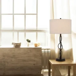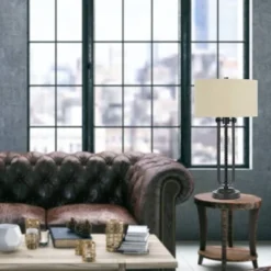 30.5 " Glass and Metal Table Lamp with Hardback Taper Drum Linen Shade Antique Brass – Cal Lighting