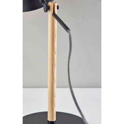 The 19″ tall Dylan desk lamp brings a blend of natural and metal materials and a unique silhouette that complement contemporary, mid-century modern, or modern chic dĂ©cor. The lamp features a thin, 9″ diameter black metal base supporting a natural China oak stem. Topping the lamp is a large round black metal shade with a matching mesh top that can be rotated to direct the light from a 100W bulb (not included) wherever it’s needed. The lamp is powered by a 5′ cord covered in black and white fabric. Complete your dĂ©cor with the coordinating tall Dylan floor lamp.