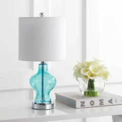 JONATHAN Y 20" (Set of 2) Colette Mini Glass Table Lamps (Includes LED Light Bulb) Blue – JONATHAN Y