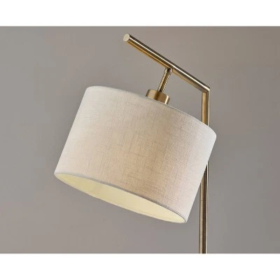 The Reynolds table lamp illuminates any space with its simple, geometric architecture that suits contemporary, mid-century modern, or industrial styles. At 25″ tall, this lamp fits perfectly on desks, nightstands, end tables, or accent tables. The lamp features a rectangular antique brass base supporting a thin, matching stem. The top of the stem angles to support a 10″ diameter x 6.5″ tall drum shade made of textured white fabric to softly diffuse the light from a 60W bulb (not included). Easily turn the lamp on or off with a rotary socket switch. Complete your space’s dĂ©cor with the coordinating Reynolds floor lamp.