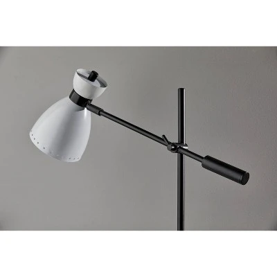 Black and white metal finishes make up the composition of the Sadie Desk Lamp. Adjust the arm up and down and use the 360 degree swivel on the shade to focus the light directly where it is needed. A chunky white marble base elevates the look while providing a heavy, stable stance for this upscale, contemporary desk lamp. A simple on/off switch is located on the shade. Set this lamp on your desk or next to your favorite reading chair to add style and efficience.