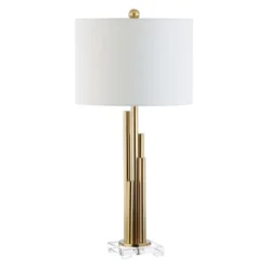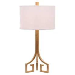 Refresh your living room, bedroom, or den with the classic elegance of the Jill double gourd ceramic lamp. Shown in bold colors with brass stand and fittings, this gracefully curved lamp is paired with gold-rimmed cotton shade for a soft transitional look. The Jill Double Gourd Ceramic Lamp Set by Safavieh is available in a variety of colors to best suit your personal tastes and decor. It has a rotary switch, a E26 bulb base type, and is sold in a set of 2.