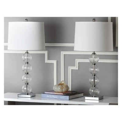 Updating an Art Deco classic, the Amanda Lamp (set of two) balances a stack of four fluted crystal balls atop a polished mirror-finished base. Just as glamorous as its 1930s inspiration, Amanda is refreshed for today’s homes with a white cotton shade.