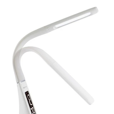 This lamp adjusts from 10 to 18.75 inches and holds position with the sleek flexible neck. Keep your mobile phone and tablet charged with the convenient USB port (5V, 2.1A). Plus you’ll stay on track with the alarm feature and smart digital display that shows date, day of the week and time.